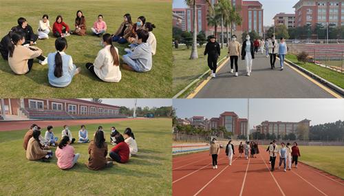 主题活动包含绕校健步行活动及操场趣味座谈会,女职工们精神饱满、积极参与,一阵阵欢声笑语在美丽的校园操场上响起。大家促膝围坐,说一说自己的美好理想,谈一谈自己的奋斗目标,在愉快轻松的环境下分享着自己在工作与生活中的心得体会、人生感悟。