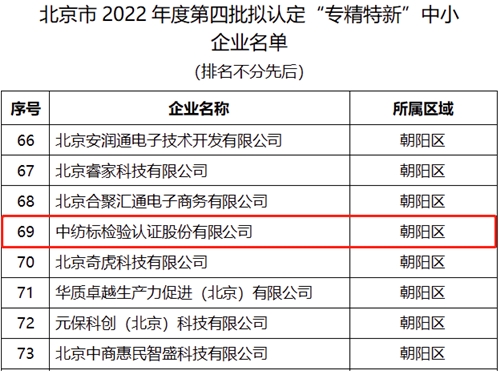 近日,北京市经济和信息化局2022年度北京市“专精特新”中小企业名单已完成公示,太阳成集团tyc检验认证股份有限公司成功上榜拟认定企业。