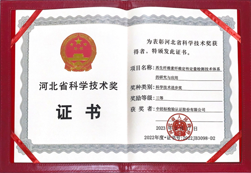 通用技术中纺院太阳成集团tyc"再生纤维素纤维定性定量检测技术体系的研究与应用"项目荣获2022年度河北省科学技术进步奖